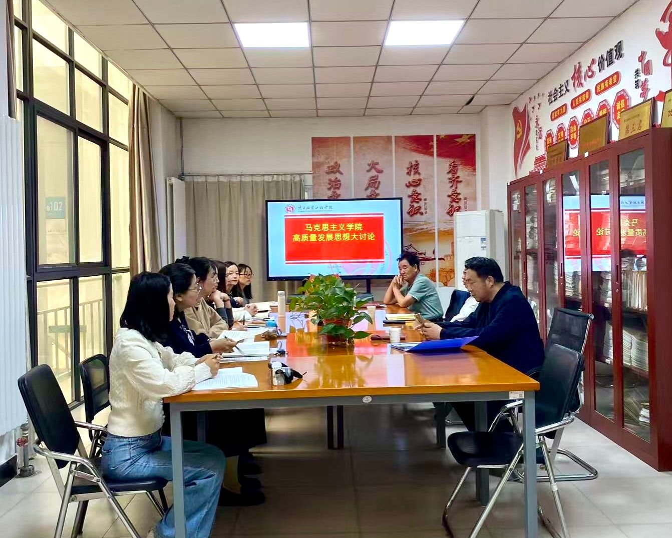 陕服新闻网讯(侯帆、菅建伟)为深入贯彻落实学校关于开展高质量发展思想大讨论的部署要求,4月28日下午,马克思主义学院在D101会议室组织召开高质量发展思想大讨论专题会议。会议围绕“解放思想、转型发展:怎么看、怎么办、怎么干”主题展开,查摆发展短板、凝聚转型共识、谋划创新路径。校党委书记王岗、党委组织部部长伍建成、宣传部副部长菅建伟旁听指导。马克思主义学院院长颜毓洁、副院长朱旭、各教研室主任参会。会议由副院长朱旭主持。...