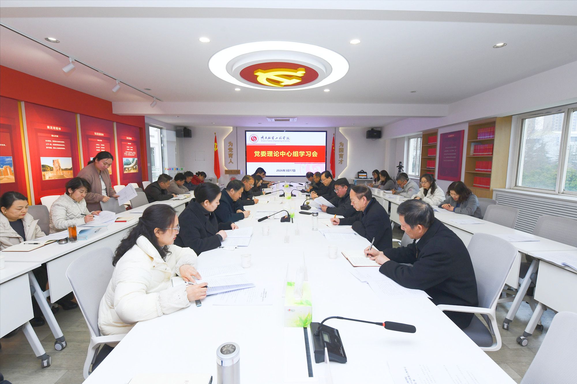 陕服新闻网讯(李文斌)3月17日下午,学校在行政楼326会议室召开党委理论学习中心组2026年第2次学习会议,传达学习习近平总书记在全国两会期间的重要讲话精神,研读2026年全国两会相关文件及教育部贯彻落实要求,研究贯彻落实举措。党委书记王岗主持会议并讲话。会议认真学习习近平总书记重要文章《让愿担当、敢担当、善担当蔚然成风》精神,习近平总书记在全国政协农工党、九三学社、医药卫生界、社会福利和社会保障界联组会上的重要讲话精神,...