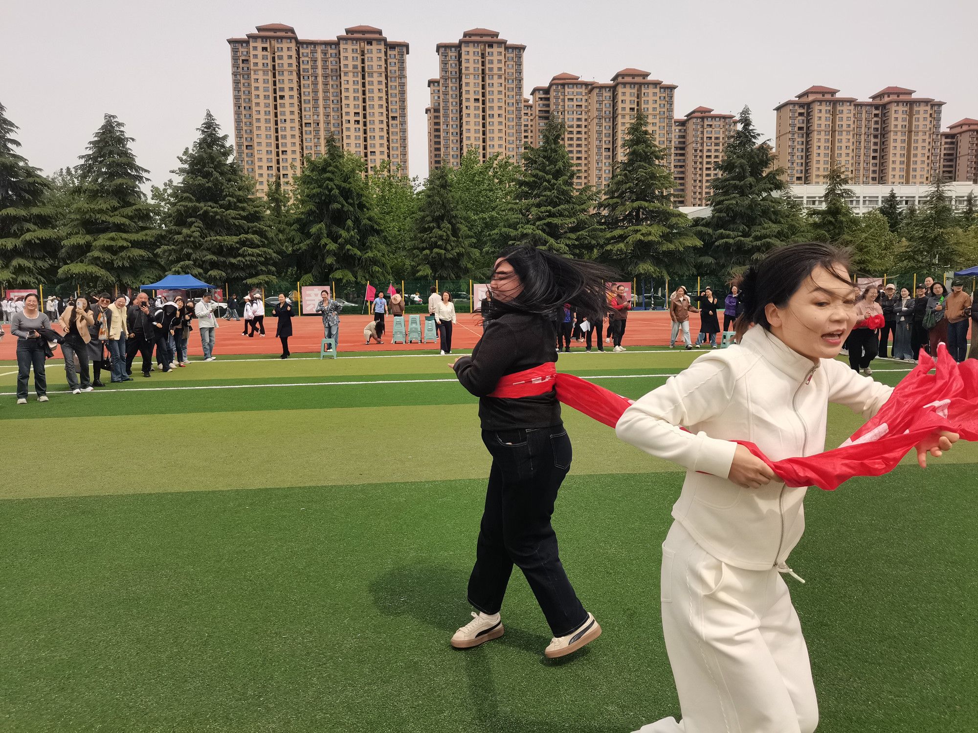 陕服新闻网讯(校工会)4月22日至23日,由校工会主办的教职工趣味运动会在学校体育场欢乐举行。本次活动共设置六个竞赛项目,吸引300余名教职工热情参与。运动员们默契配合,充分展现了学校教职工团结协作、昂扬向上的精神风貌。在夹乒乓球比赛中,选手们屏息凝神,用筷子小心翼翼地传递乒乓球,展现出细腻的手眼协调能力;腰缠万贯比赛里,参赛者们迅速拿起条幅,原地旋转将其缠绕腰间,快步向对面接棒队员奔去,全力以赴完成交接。...