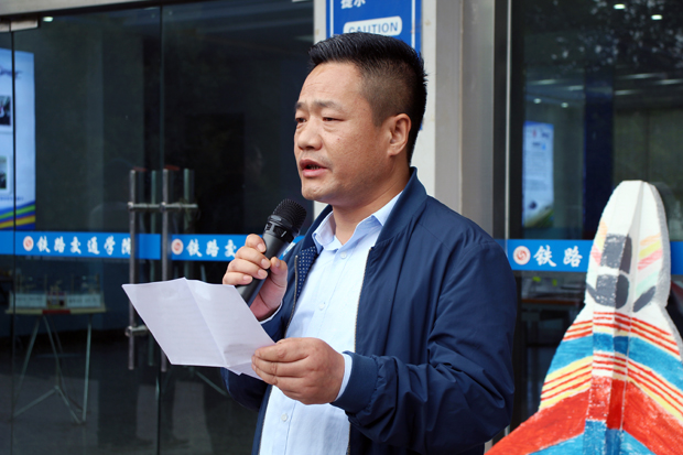 高职学院副院长常利群致辞。他在致辞中说:“高职学院全体师生踏着‘五四’爱国、进步、明主、科学的步伐迎来了第二届航模大赛决赛暨颁奖典礼。第二届航模大赛共有 400多名同学参加,征集到高铁、火车、飞机等各种模型180多件。征集的90%的作品都是利用废旧物品制作而成。这些成本低廉、想象奇特、变废为宝的作品,不但丰富第二课堂,增加了同学们的环保意识,而且展示了高职学院学生的想象力、创新力和动手能力。”
