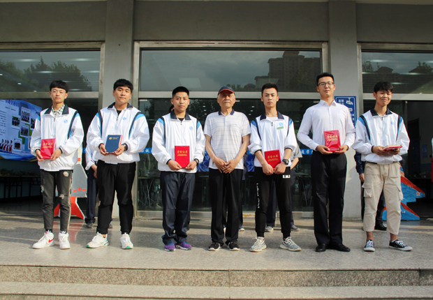 高职学院副院长常理群为获得最佳组织奖的班级颁奖并合影
