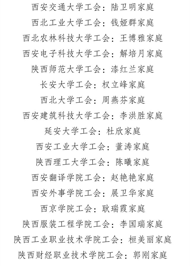 陕服新闻网讯(李文斌)近日,陕西省教科文卫体工会为发挥先进模范作用,进一步推进职工家庭读书会活动广泛开展,表彰了一批职工家庭读书会活动优秀单位和优秀家庭。省教科文卫体工会结合各基层工会日常活动开展和宣传情况,经过日常调研、查阅总结和会议研究等程序,评选出西安交通大学工会等 22 家优秀单位,陆卫明等 22 个优秀家庭。我校被评为优秀单位、艺术设计学院李国瑞家庭被评为优秀家庭。