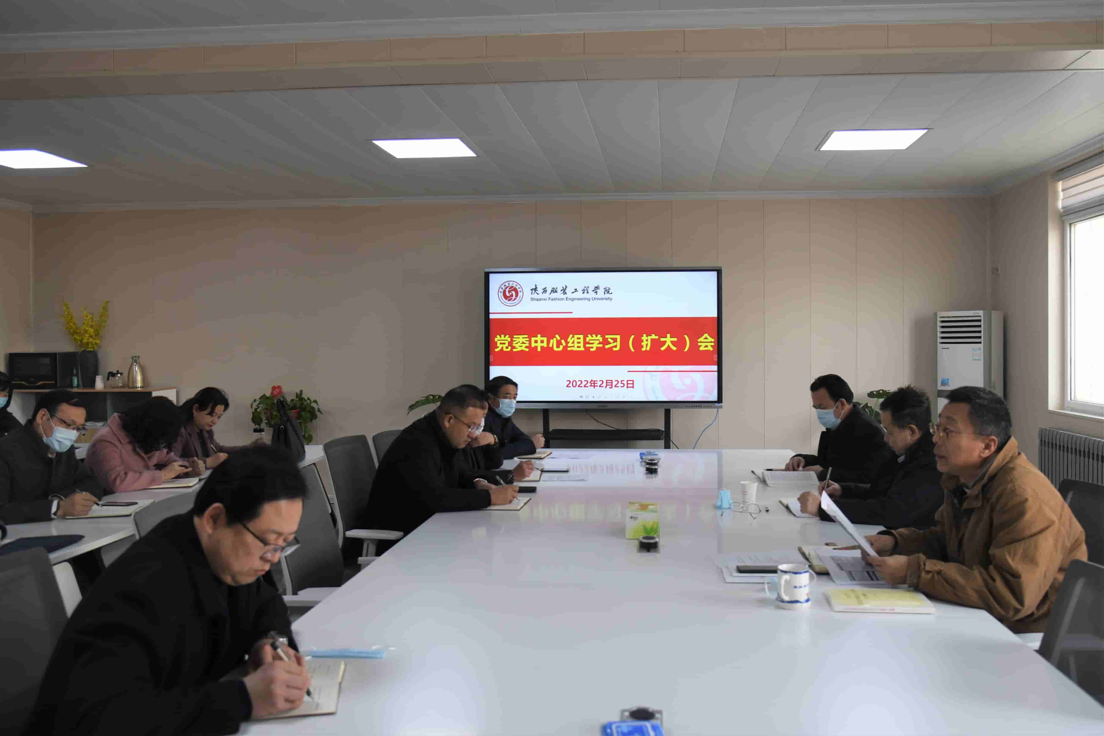 陕服新闻网讯(李文斌)2月25日下午,我校在行政中心第三会议室召开了党委中心组学习(扩大)会。会议结合党史学习教育专题民主生活会和基层党组织组织生活会相关要求,重点围绕党史学习教育专题民主生活会重点学习内容进行学习研讨和交流。党委书记温锋主持会议,校党政领导班子成员、党委工作部门负责人、马克思主义学院院长、校团委书记、各党总支(直属党支部)书记、全体思政课教师参加了会议。