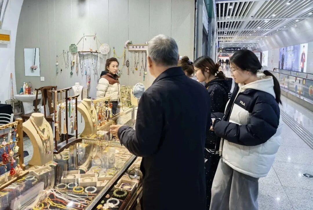 陕服新闻网讯(服装学院)为深化产教融合,拓展学生的专业视野,近距离感受传统珠宝首饰手工艺制作的独特魅力,3月3日,在专业老师带领下,我校服装学院珠宝系部分一年级学生前往西安市朝阳门外的陕西雕刻艺术一条街,开展了一场别开生面的见学实习活动。活动旨在让学生们走出课堂,通过与珠宝首饰手工艺制作大师的面对面交流,领悟工匠精神,激发学习兴趣,汲取创作灵感。