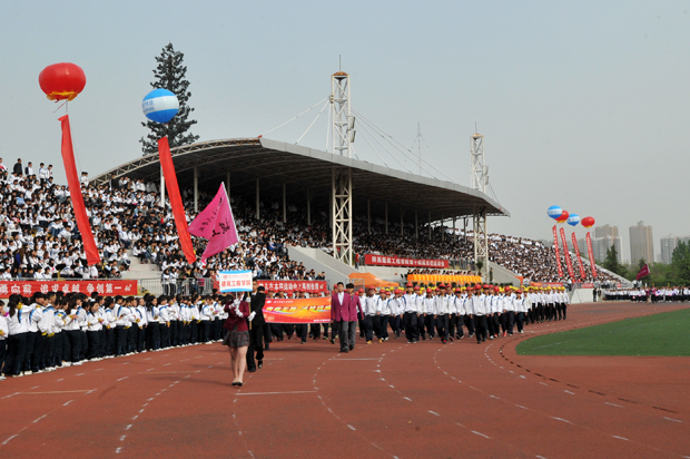 四月的陕服春光明媚,雨后的田径场绿草如茵。4月17日,我校第十四届田径运动会隆重举行。出席开幕式的领导有董事长吕明、院长王鹏飞、执行院长李立、副院长、副书记吕超、副院长温小郑、副院长、副书记赵怀礼、副书记刘明夫及二级学院、各处室的负责人。开幕式由校党委书记张进平主持,吕明董事长宣布本届运动会开幕。