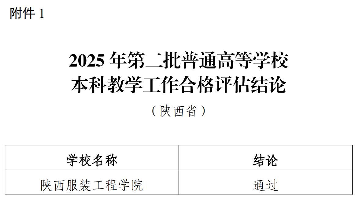 陕服新闻网讯(党委宣传部)近日,教育部办公厅印发《关于下达2025年第二批普通高等学校本科教学工作合格评估结果的通知》(教督厅函〔2026〕8号),经教育部高等教育评估评价专家委员会审议,我校本科教学工作合格评估结论为“通过”。