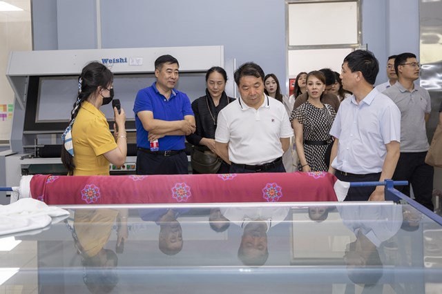 陕服新闻网讯(李文斌)6月13日下午,西北政法大学党委副书记、纪委书记肖道远、西北政法大学新闻传播学院院长孙江一行11人莅临我校考察交流。校领导陪同肖道远一行观看了学校《镐京》宣传片,参观考察了季羡林国学院、数字艺术中心、艺术学院实验室、图书馆、体育馆、现代服装产业学院等处,并在国学院一楼会议室进行了深入交流座谈。董事长吕明、副董事长吕超、副校长李宗领、服装学院院长张莉、宣传部负责人伍建成、新媒体中心负责人芮小博参加座谈会。副校长吴俊林主持座谈会。