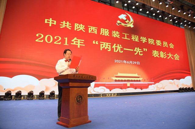 陕服新闻网讯(伍建成)6月29日,中共陕西服装工程学院委员会2021年“两优一先”表彰大会在体育馆隆重召开。校董事会、党政领导班子成员,各处(室)、二级学院党政负责人,师生党支部书记,师生党员代表,受表彰的先进基层党组织和优秀党务工作者、优秀共产党员、部分入党积极分子参加大会。校长、党委副书记张义明同志主持大会。