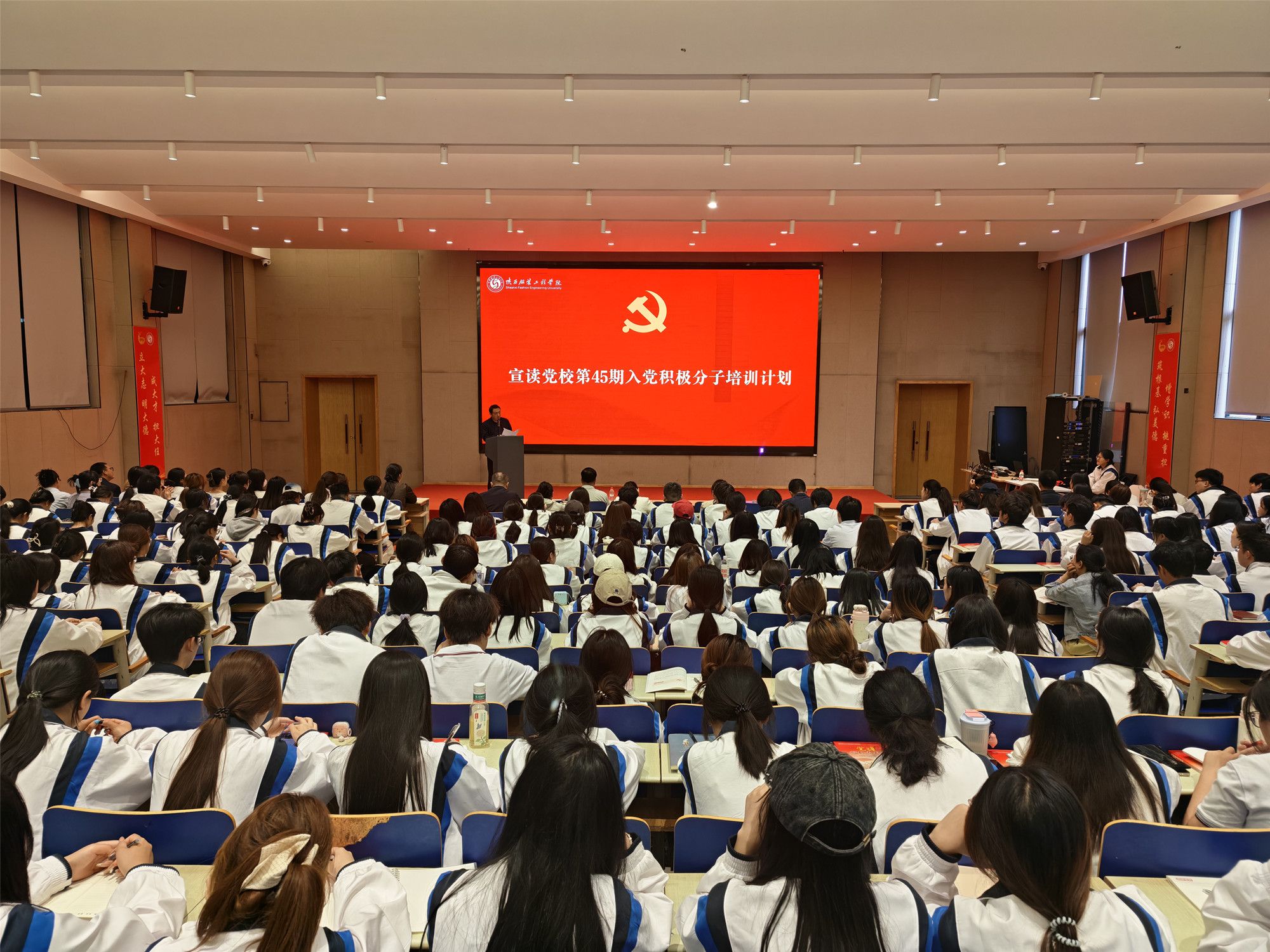 预备党员入党宣誓暨党校第45期入党积极分子培训开班仪式结束后,党校第45期入党积极分子培训正式开讲。马克思主义学院院长颜毓洁教授以“百年大党成就辉煌 赶考新路续写华章”为题,为学员们上了党校第一课。