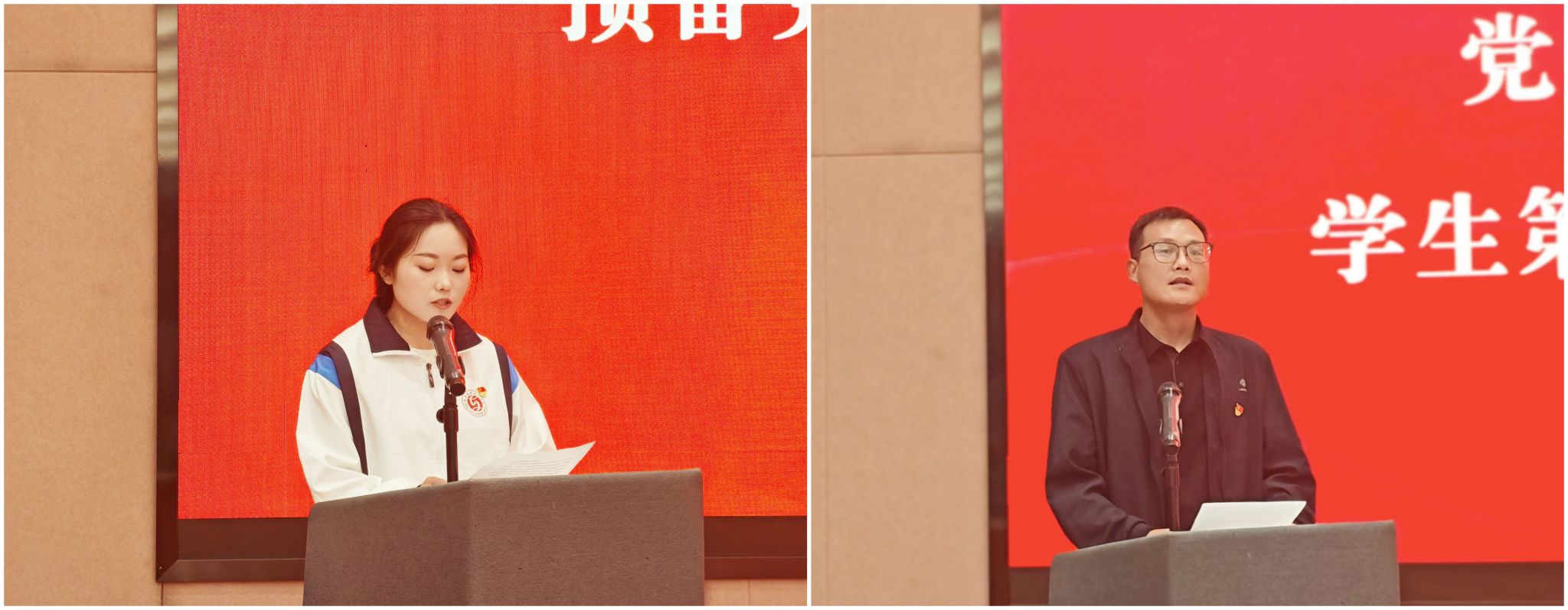 伍建成宣读校党委关于接收预备党员文件,党委组织部副处级组织员刘萍同志领誓,新接收的预备党员在党旗下庄严宣誓,立下为共产主义事业奋斗终生的誓言。伍建成宣读党校第45期入党积极分子培训计划。新接收预备党员代表、教育学院小学教育2203班张靖尧发言,表示“将以笃学精进的态度筑牢从教根基,将以赤诚服务的初心践行党员使命,将以坚定信仰的赤诚永葆入党初心。经济管理学院学生第一党支部副书记兼党校第45期班主任王雷发言,对预备党员表示祝贺和欢迎,并对参加党校第45期的入党积极分子寄予希望。